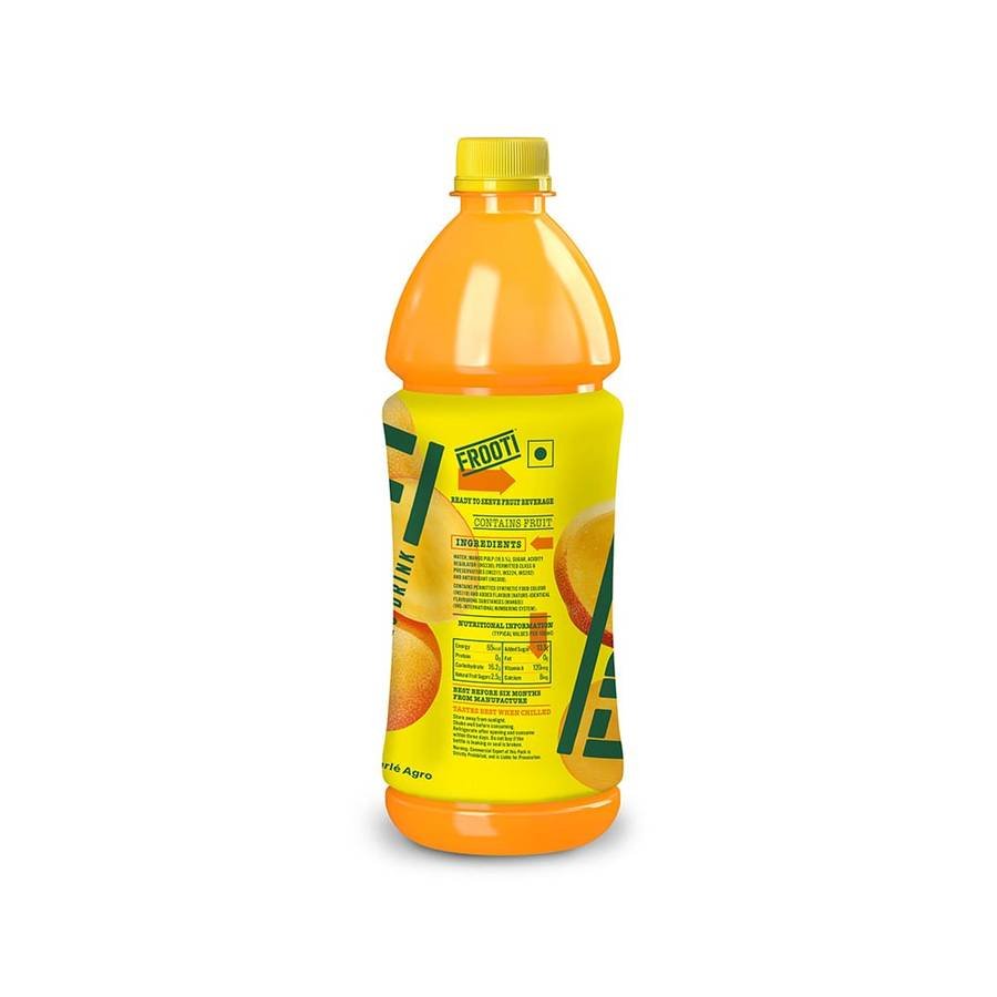 Enjoy the delightful taste of pulpy mangoes in every sip of Frooti (Bottle) Fruit Drink. A ready to serve wholesome beverage, packed with energy, it makes for a perfect summer refresher with a lingering aftertaste.